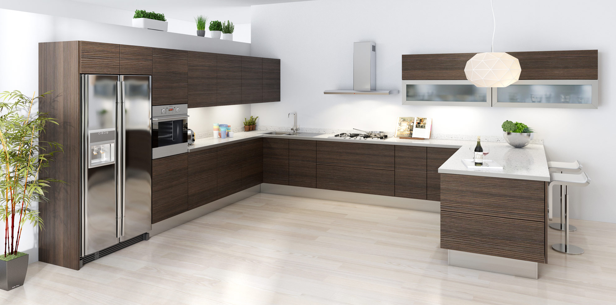 Коричневый цвет придаст кухне уюта. Именно гарнитуры, выполненные «под дерево» пользуются большой популярностью, как проверенное временем, стандартное решение.
